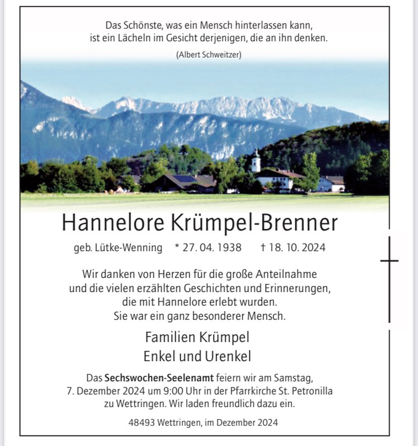 Hannelore Krümpel-Brenner geb. Lütke-Wenning