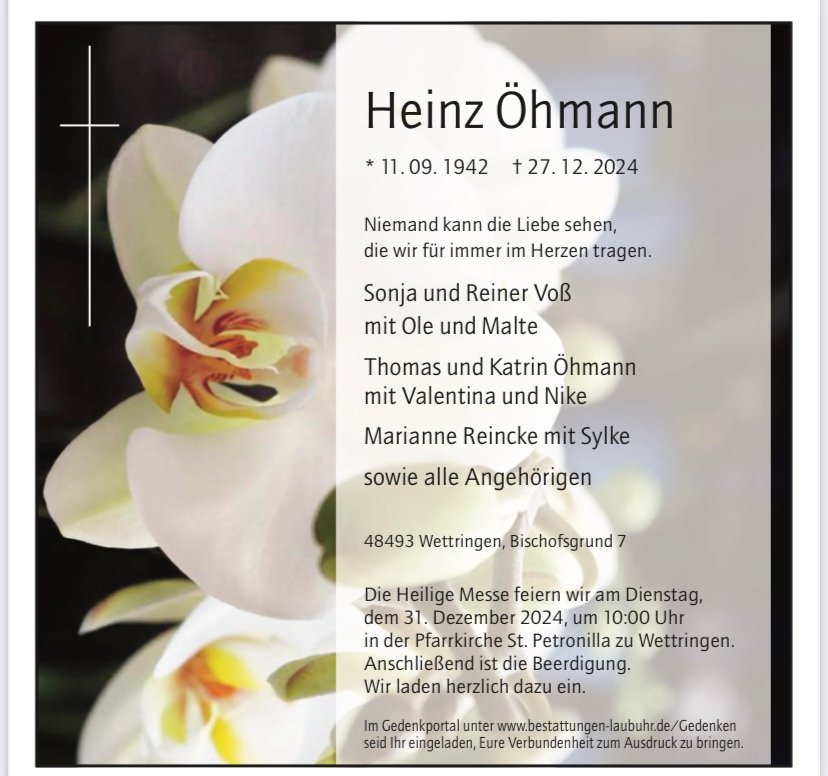 Während unserer zeitweise zusammen verbrachten Lehrzeit habe ich Heinz kennen und schätzen gelernt, ein liebenswerter Mensch. Nun möge er ruhen in Frieden !