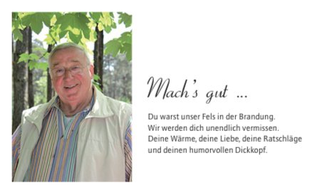Er war ein besonderer Mensch, dessen Lebensleistung meinen größten Respekt verdient: Als junger Witwer hat er mit großer Stärke und Hingabe Verantwortung für euch übernommen und euch mit Liebe durchs Leben begleitet.