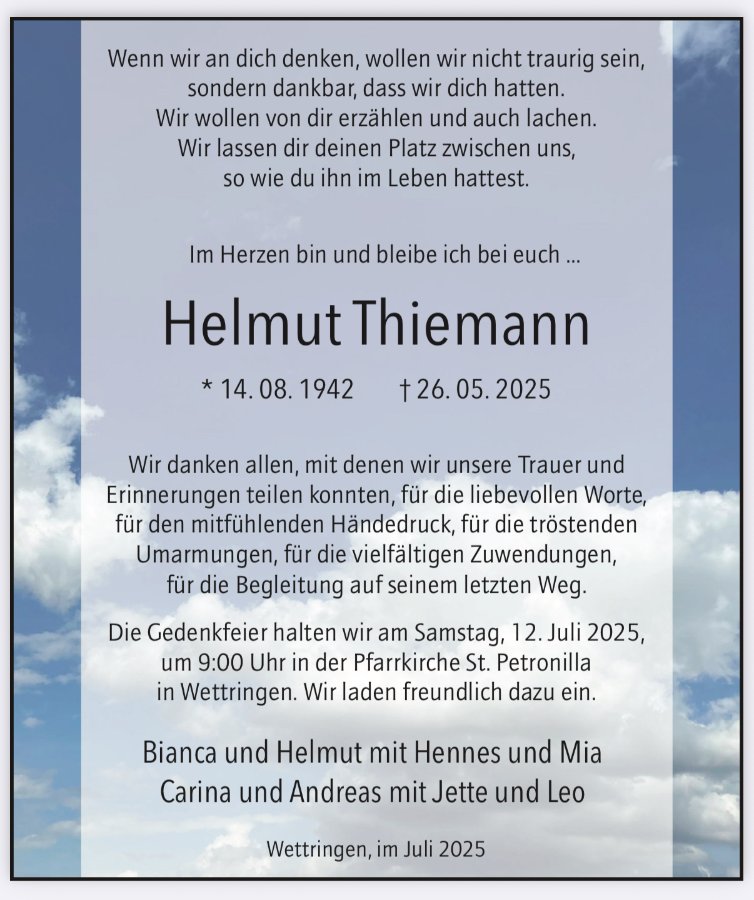 gestorben am 26. Mai 2025 in Wettringen