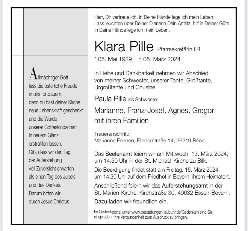 Mein Mitgefühl gilt ihren Angehörigen, die sich mit bewundernswertem Einsatz so liebevoll um Klara gekümmert haben.