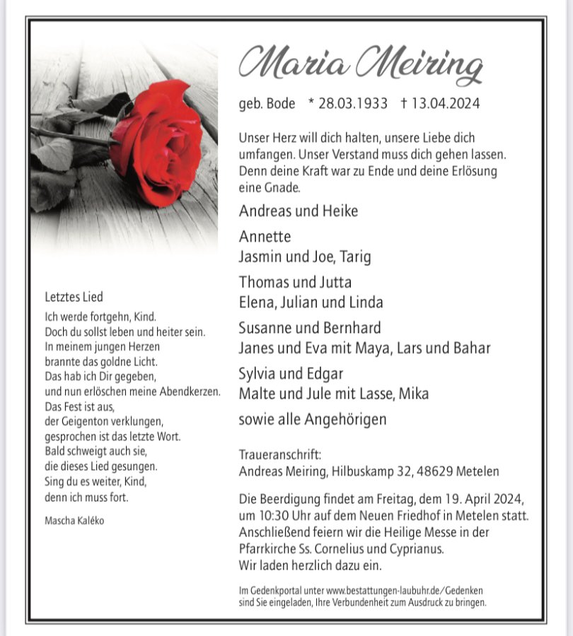 Sprechen Sie im Kondolenzbuch den Hinterbliebenen Ihr Beileid aus und teilen Sie persönliche Gedanken und Erinnerungen mit anderen.