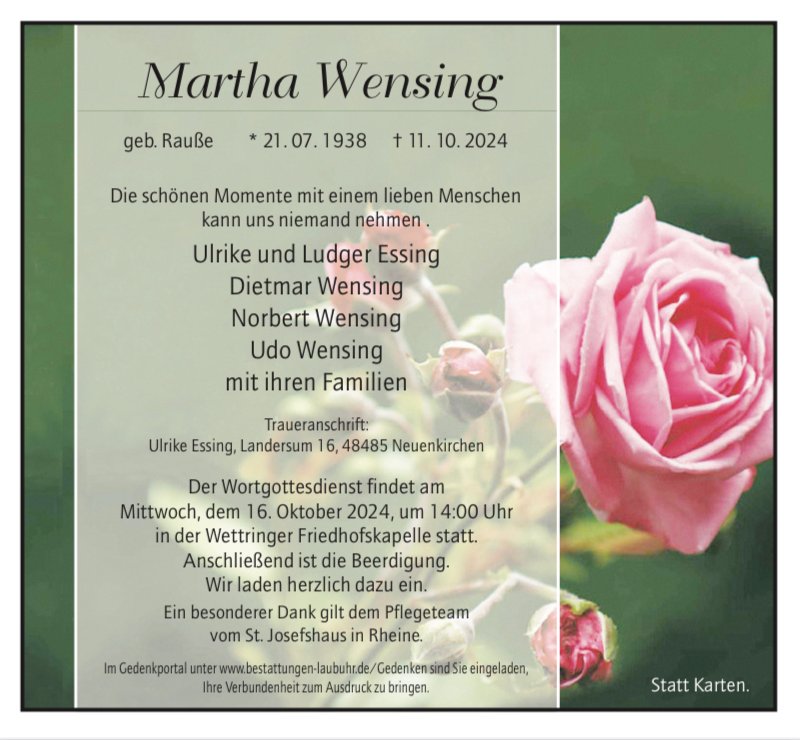 Sprechen Sie im Kondolenzbuch den Hinterbliebenen Ihr Beileid aus und teilen Sie persönliche Gedanken und Erinnerungen mit anderen.