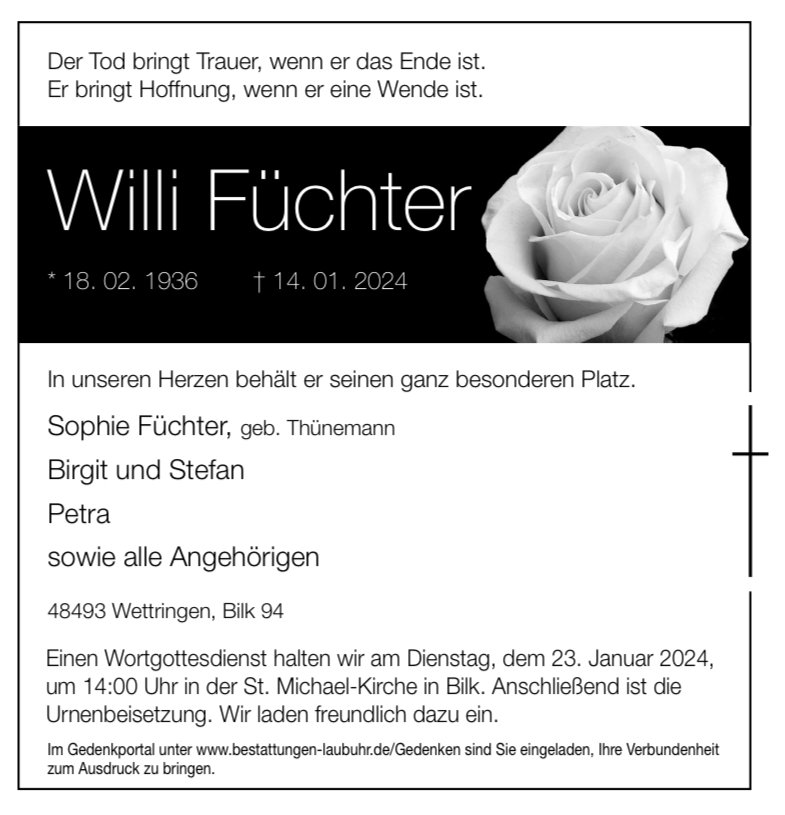 Sprechen Sie im Kondolenzbuch den Hinterbliebenen Ihr Beileid aus und teilen Sie persönliche Gedanken und Erinnerungen mit anderen.