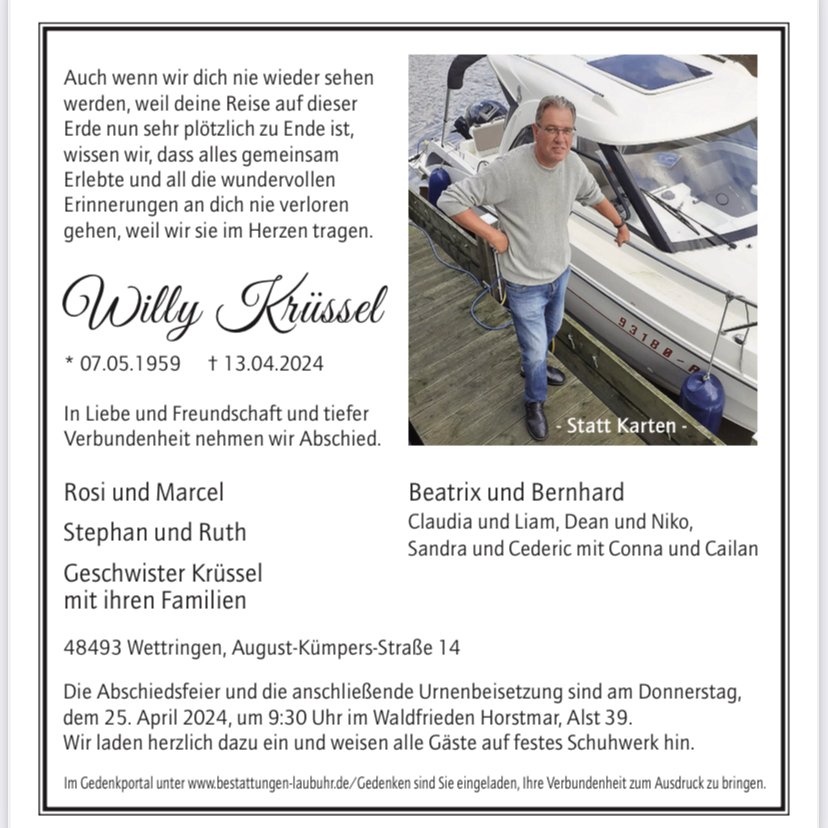 Heute haben wir erfahren dass du schon vorausgegangen bist.
